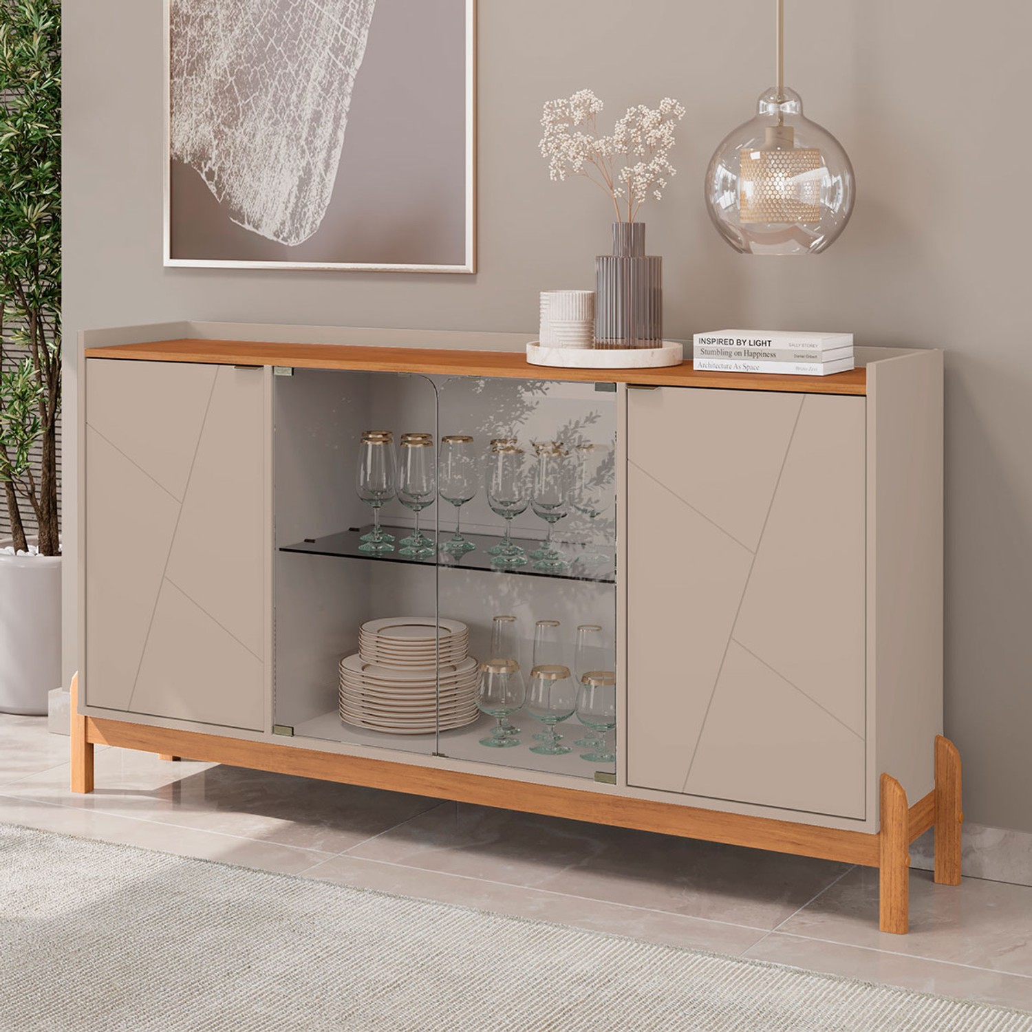 Balcão Buffet 4 Portas 3 Prateleiras Marrom/Bege - Panorama Sistemas