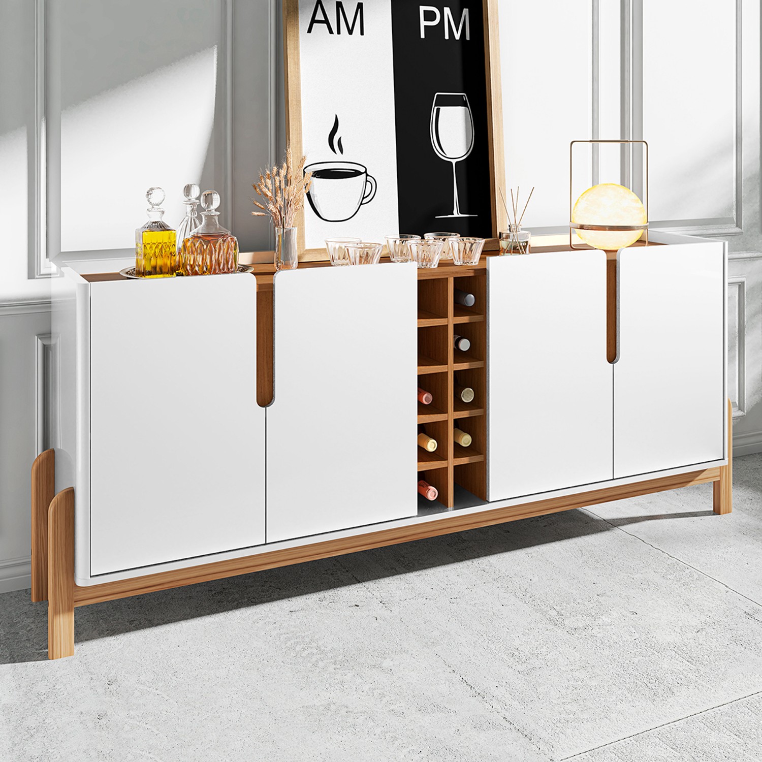 Balcão Buffet 4 Portas Adega Marrom/Branco - Panorama Sistemas