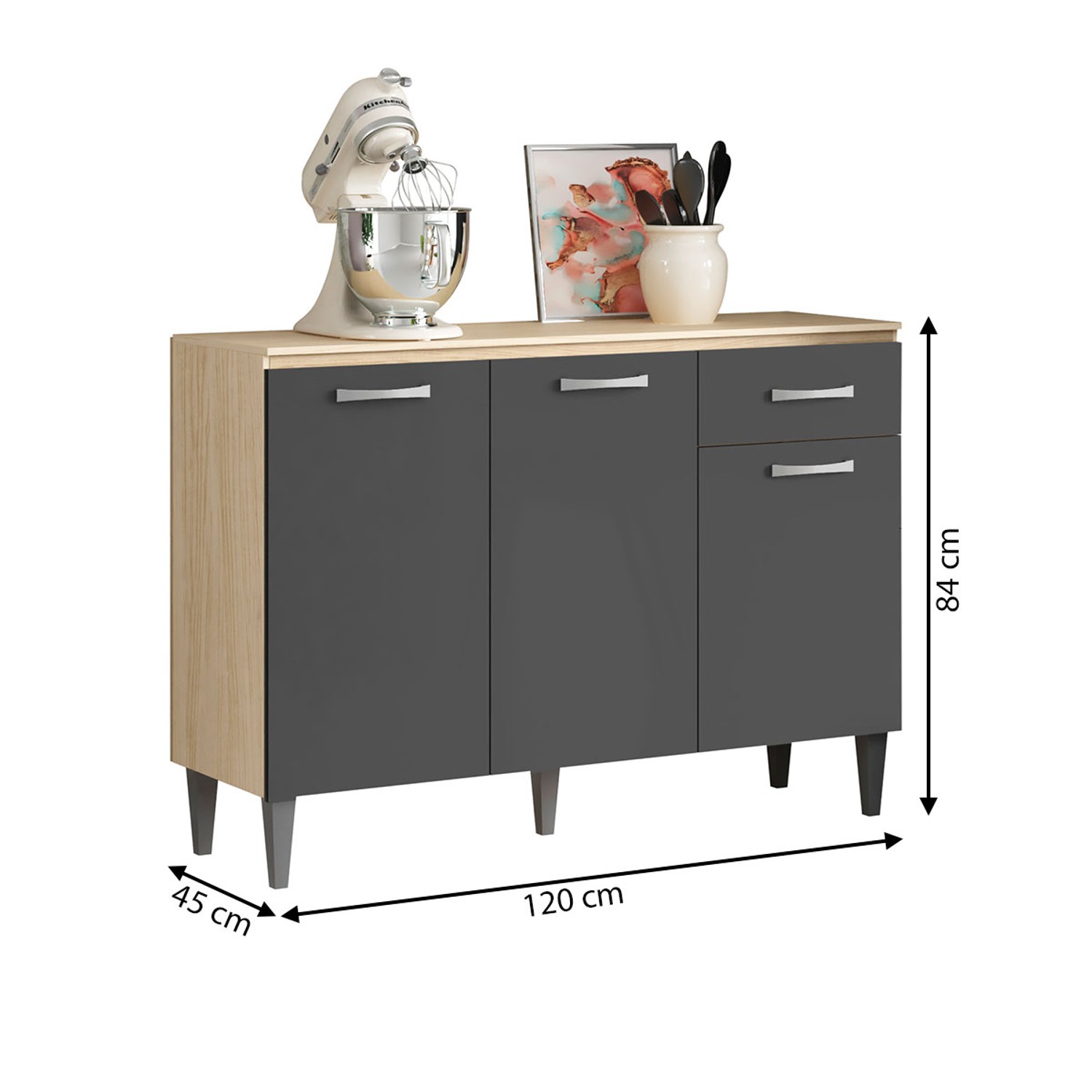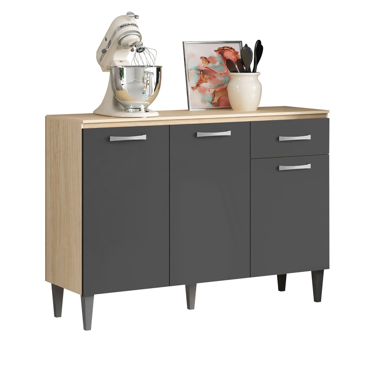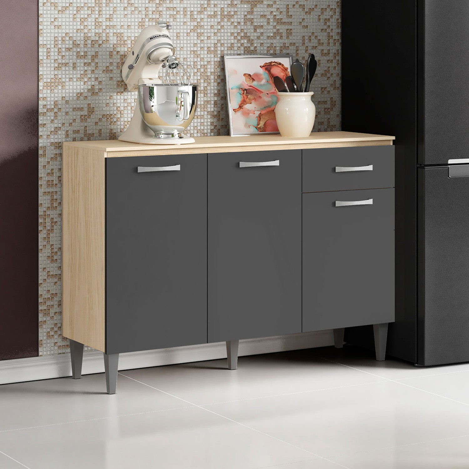 Balcão de Cozinha 3 Portas 1 Gaveta Marrom/Grafite - Panorama Sistemas
