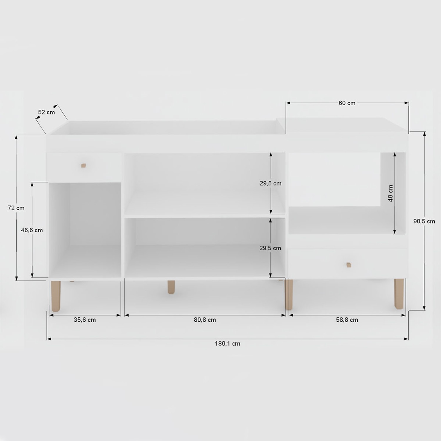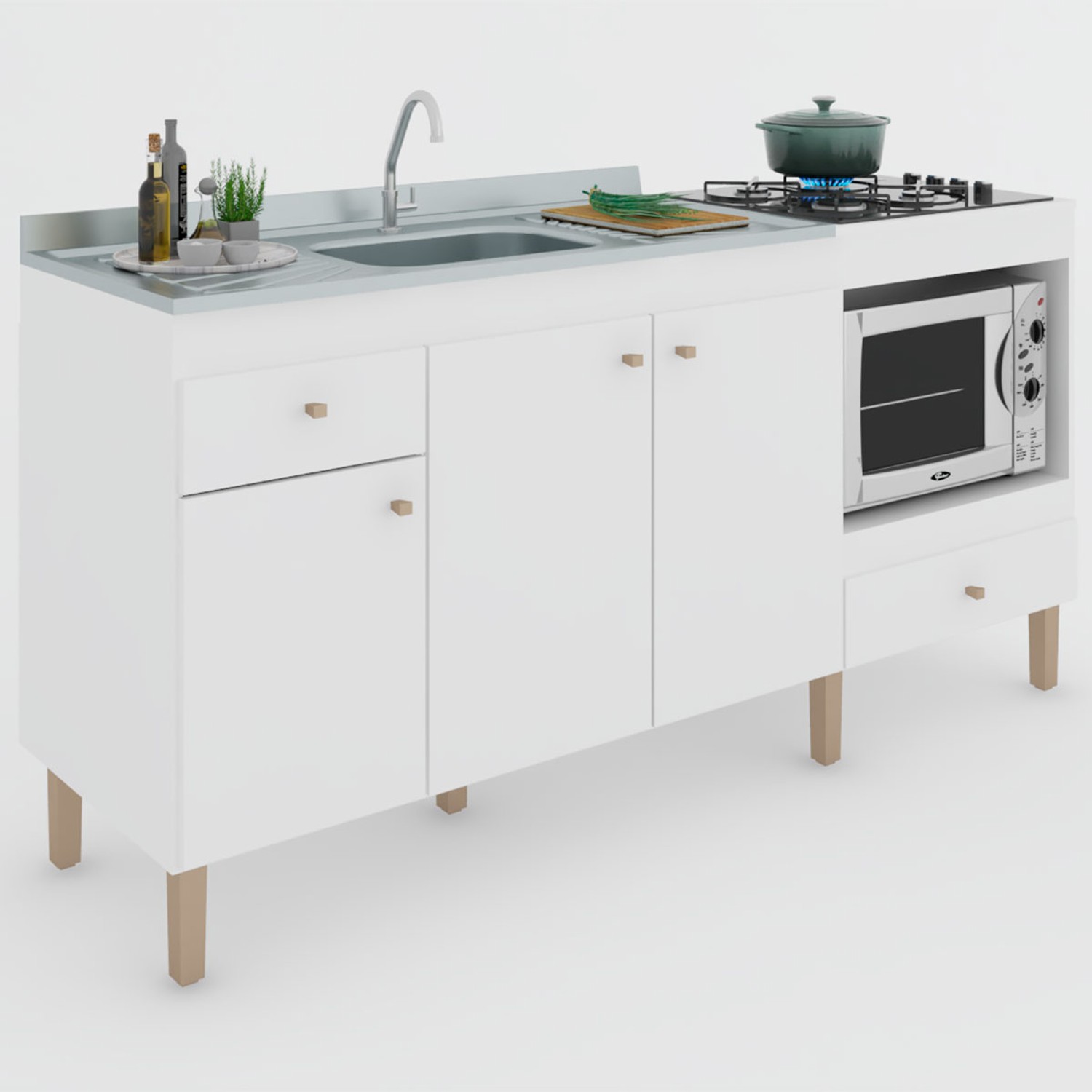 Balcão de Cozinha 3 Portas 2 Gavetas Pia Forno Branco - Panorama Sistemas