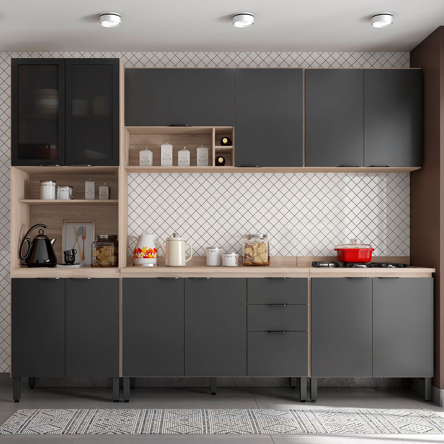 Cozinha Completa 13 Portas 2 Gavetas Marrom/Grafite - Panorama Sistemas
