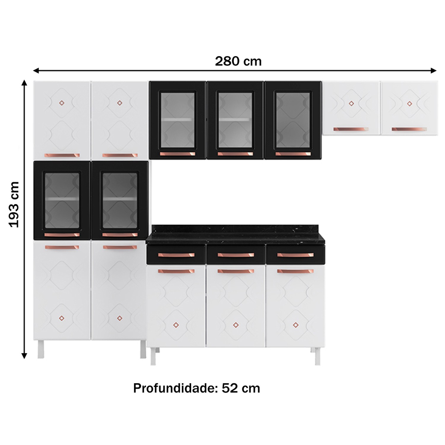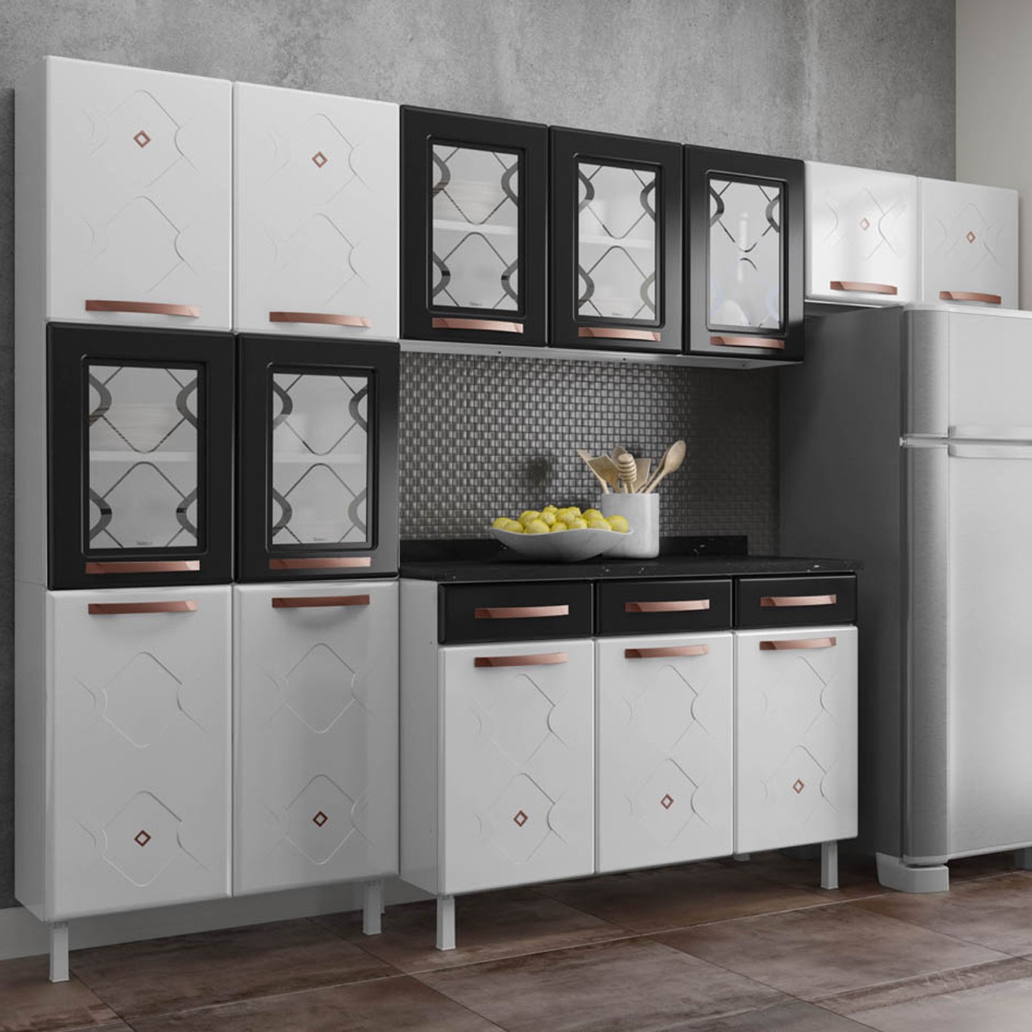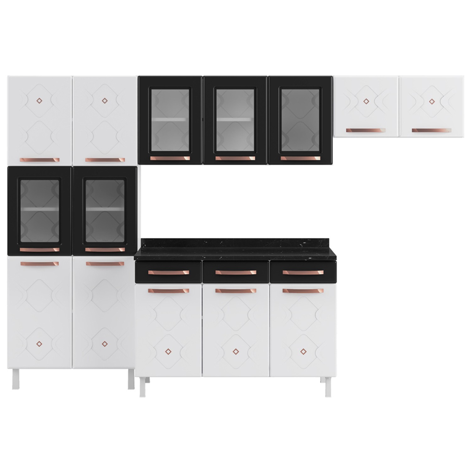 Cozinha Completa 14 Portas 3 Gavetas Branco/Preto - Panorama Sistemas