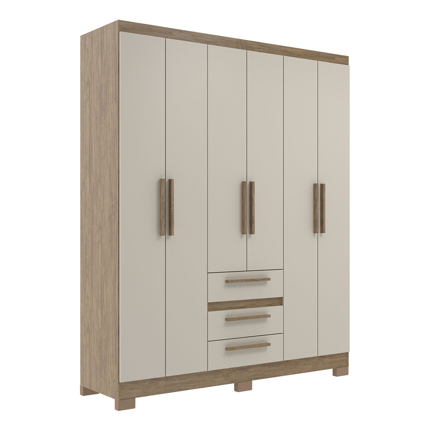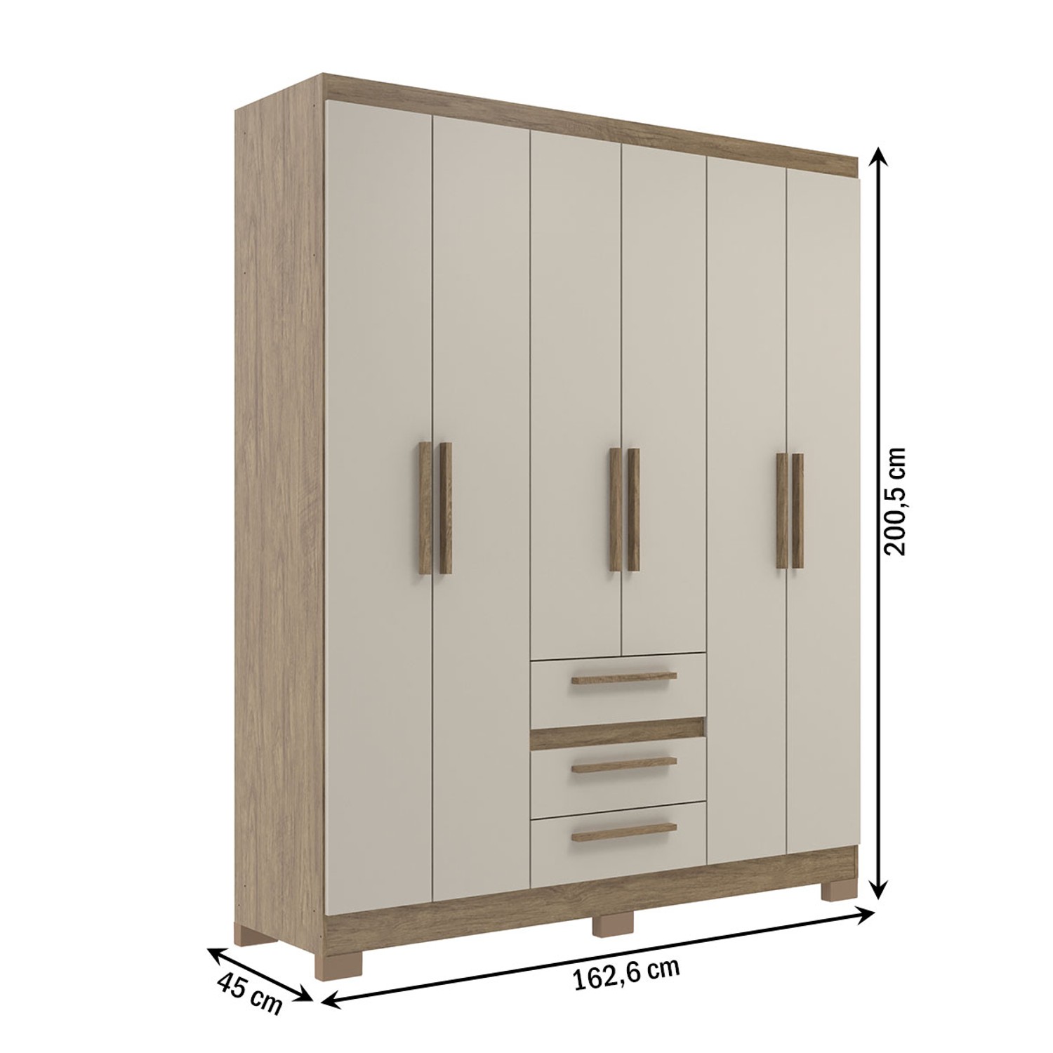Guarda Roupa Casal 6 Portas 3 Gavetas Marrom/Bege - Panorama Sistemas