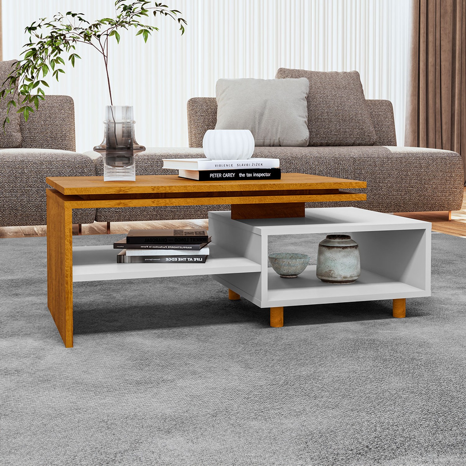 Mesa de Centro 1 Prateleira Marrom/Branco - Panorama Sistemas