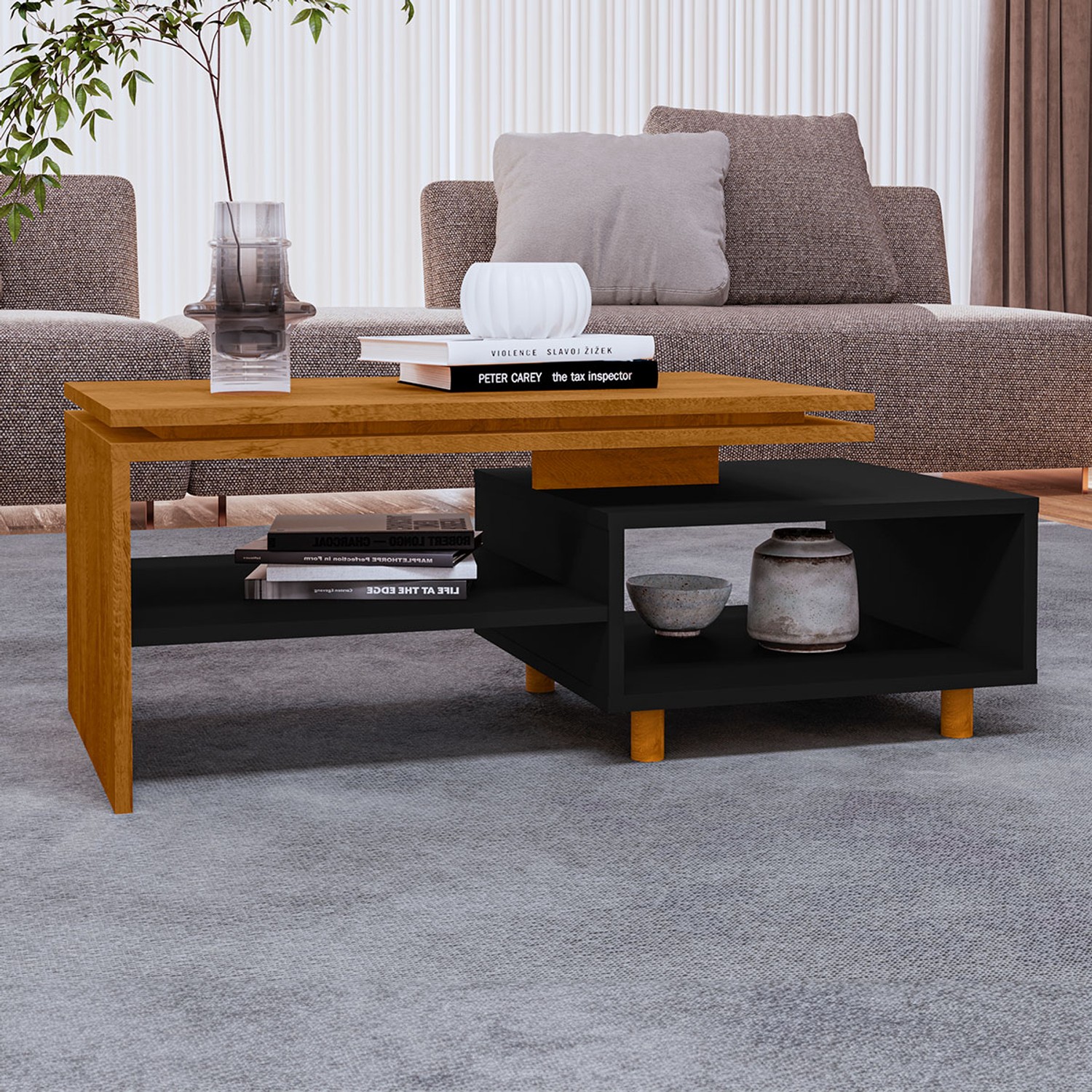 Mesa de Centro 1 Prateleira Marrom/Preto - Panorama Sistemas