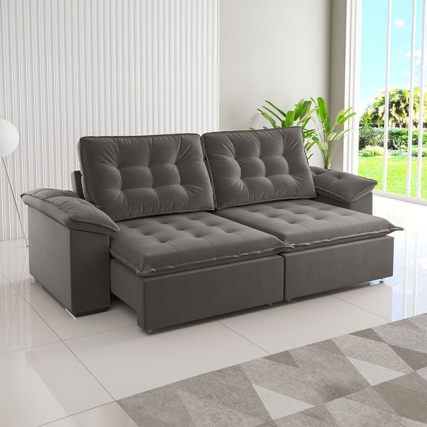 Sofá 4 Lugares Moza Grafite - Panorama Sistemas